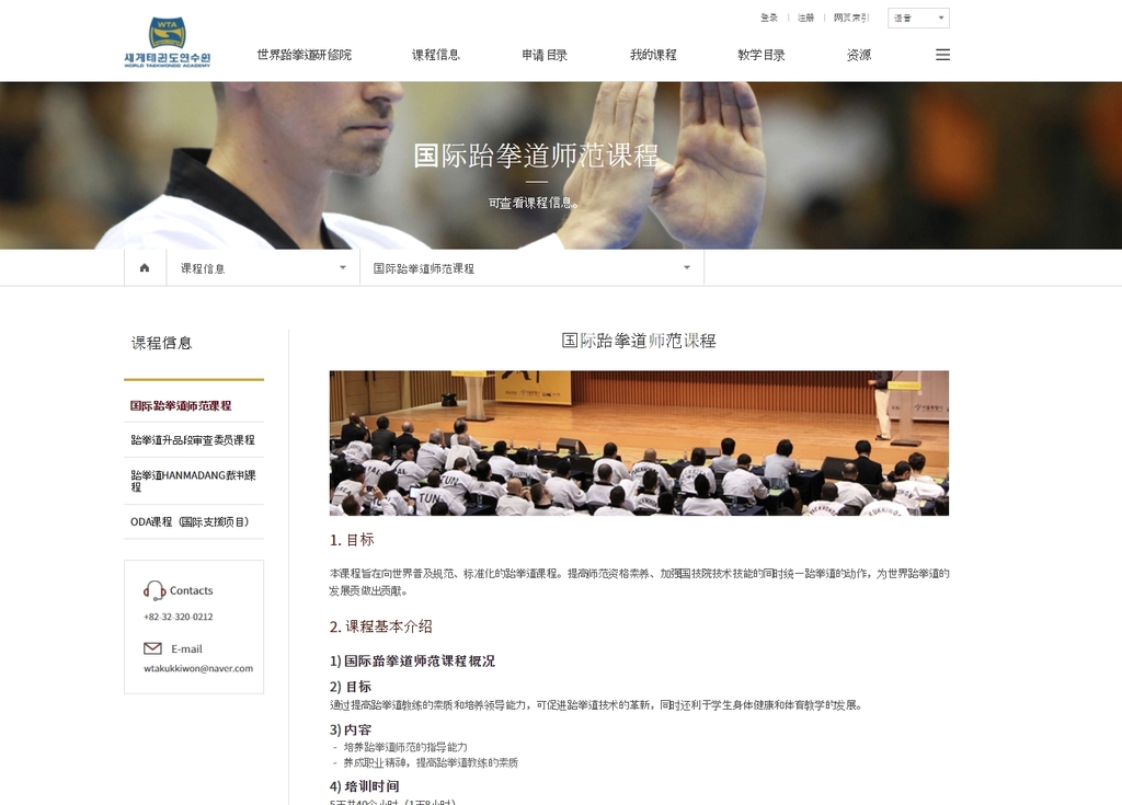 중국어 온라인 교육은 WTA 누리집을 통해 이론 수업으로 진행하며, 시험에 합격한 사람은 2년 이내 국기원에서 주최하는 현장 연수를 이수해야 한다.