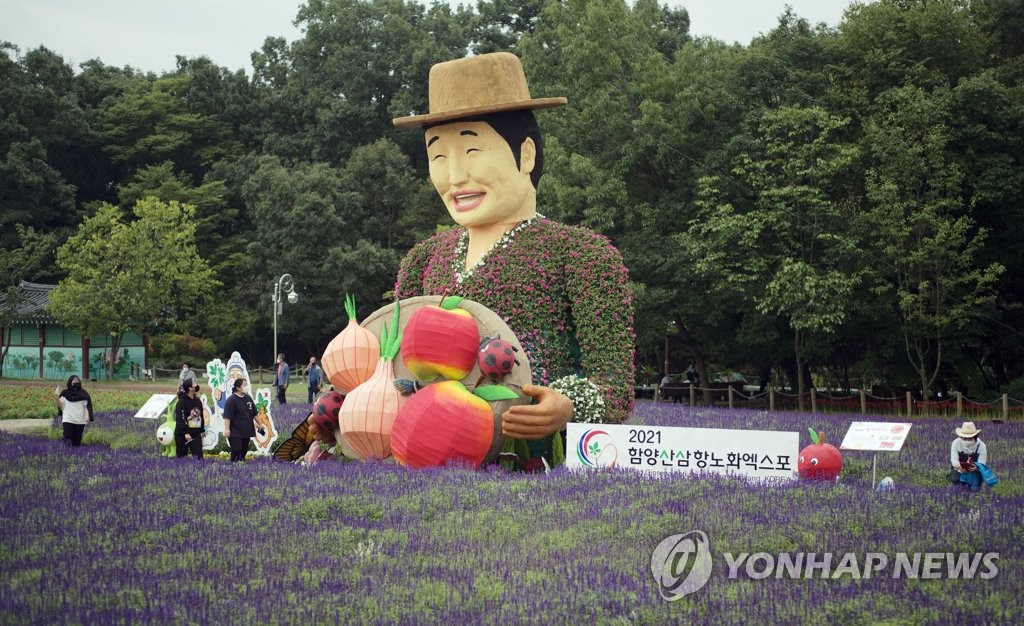 | ▲ 함양산삼항노화엑스포 개막 (함양=연합뉴스) 김동민 기자 = 2021 함양산삼항노화엑스포 개막식인 10일 오후 주 행사장인 경남 함양군 상림공원에 행사를 알리는 조형물이 설치돼 있다. 함양산삼항노화엑스포는 이날부터 내달 10일까지 함양상림공원과 대봉산휴양밸리 일원에서 열린다. 2021.9.10 image@yna.co.kr |