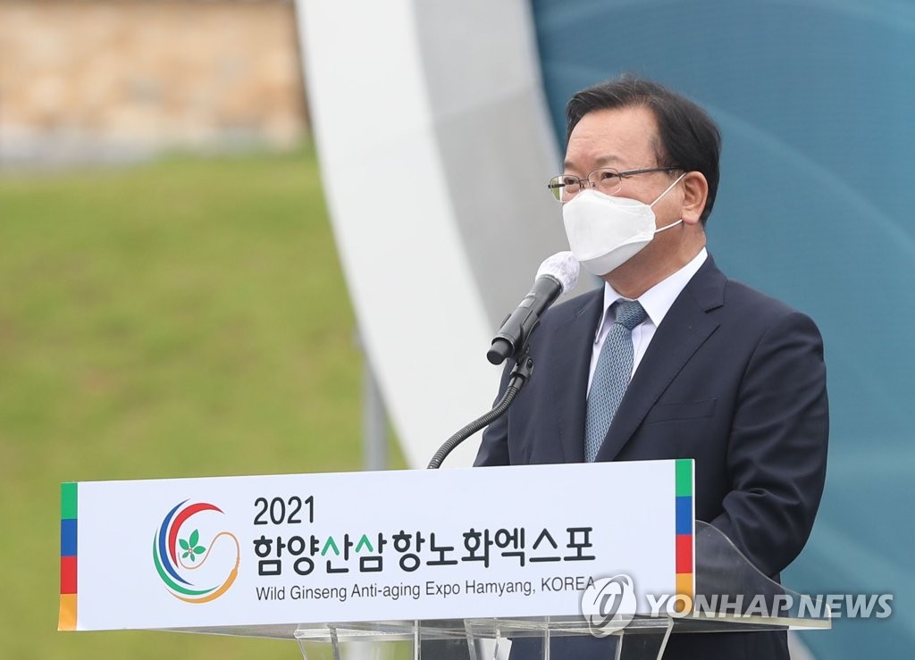 개막식에 참석한 김부겸 국무총리는 "함양산삼항노화엑스포를 계기로 함양 산삼이 세계적으로 알려져 그린바이오 산업의 핵심을 차지할 것으로 확신한다"며 "산삼을 이용한 유통망 확대, 휴식과 힐링을 결합한 상품 개발에 투자와 관심 필요하다"고 강조했다.