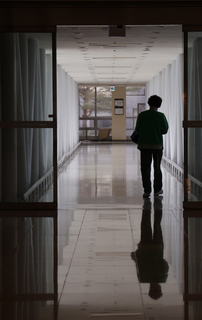A medical worker walks down a hallway at a hospital in Seoul on Feb. 25, 2024. (Yonhap)