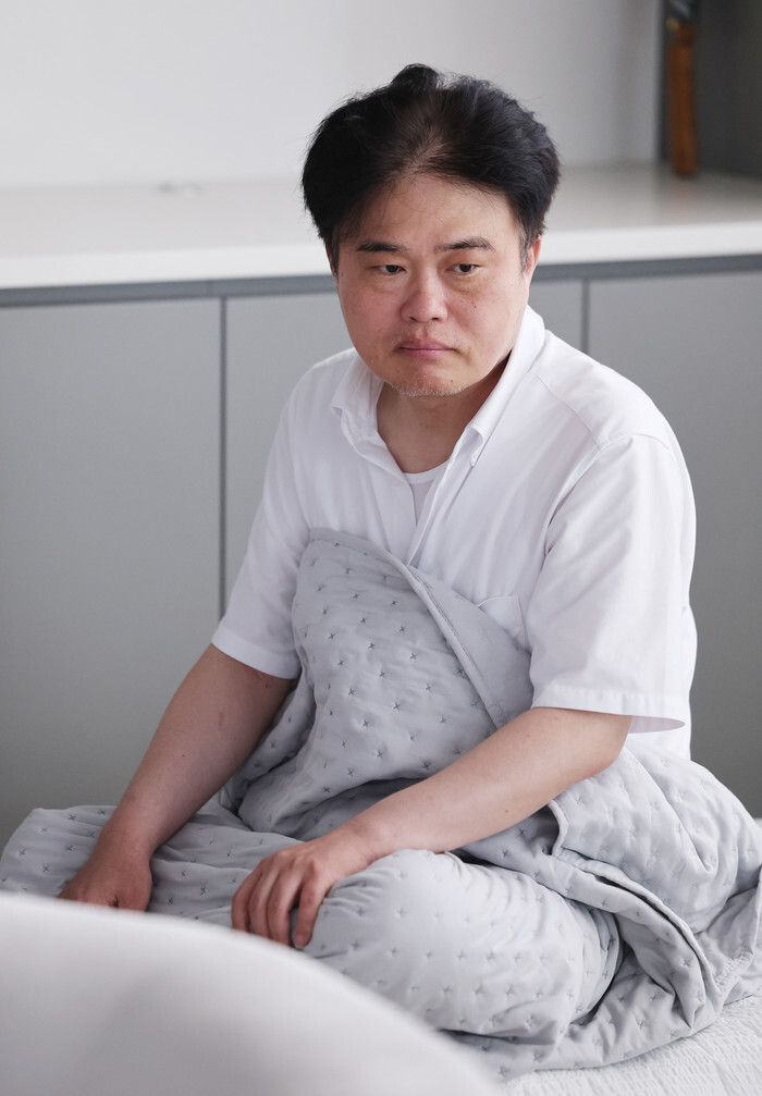 Lim Hyun-taek, head of the Korea Medical Association (KMA), continues a hunger strike inside the KMA headquarters in Seoul for the fifth consecutive day on Aug. 30, 2024, protesting the government's medical reform plans, including the increase in medical student enrollment. (Yonhap)