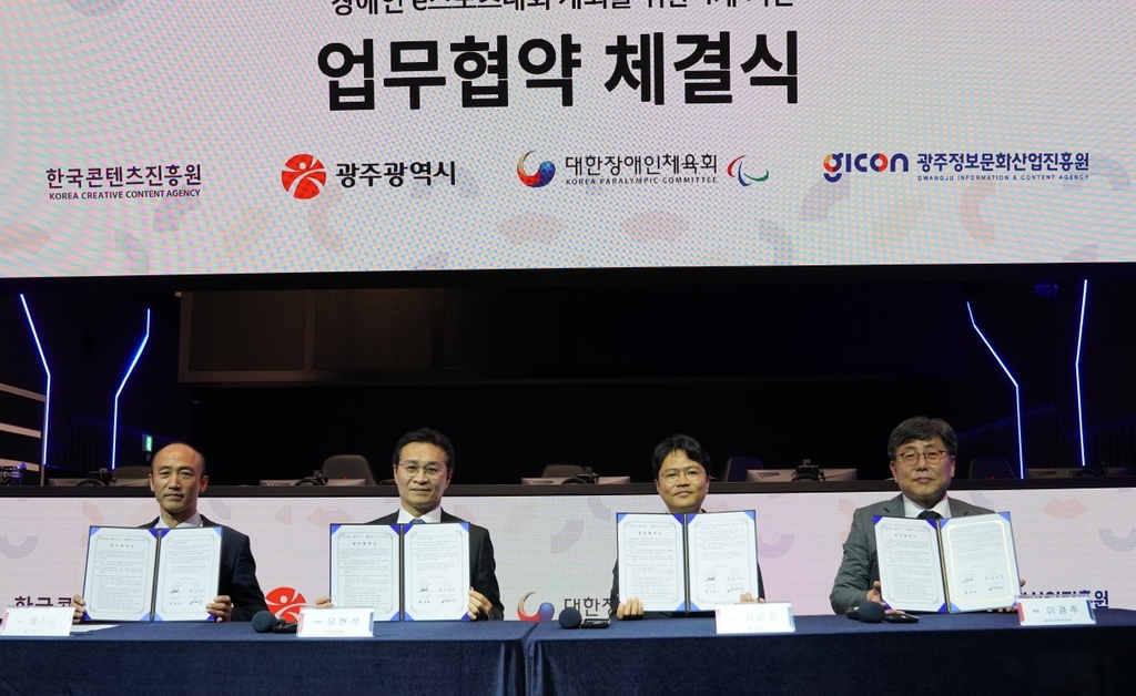 광주시, 한국콘텐츠진흥원, 대한장애인체육회, 광주정보문화산업진흥원은 31일 광주 e스포츠 경기장에서 장애인 e스포츠 대회 개최를 위한 업무협약을 체결했다.