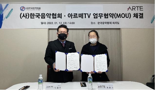 ▲ 한국음악협회, 아르떼TV와 업무협약 = 사단법인 한국음악협회와 아르떼TV가 지난 12일 서울 양천구 한국음악협회 회의실에서 대한민국 예술교육의 발전과 성장을 위한 업무협약을 체결했다.