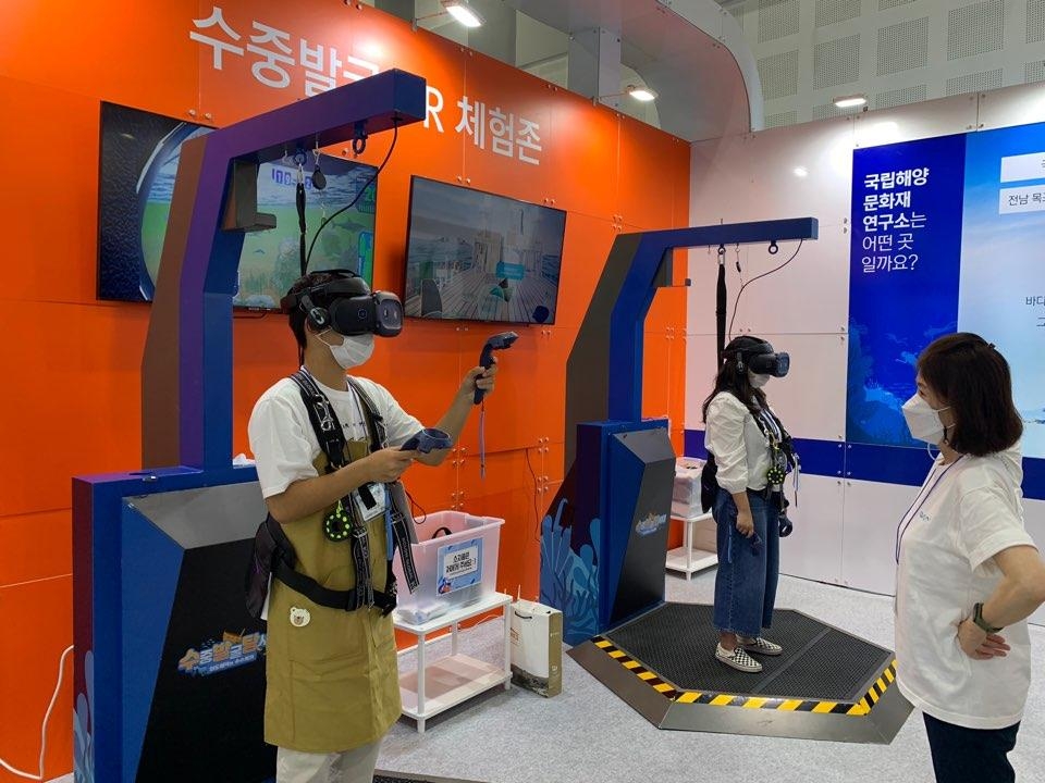 국립해양문화재연구소의 수중발굴 VR 체험존, 국립문화재연구원의 황룡사 중문·남회랑 증강현실(AR) 체험존에는 헤드셋이나 태블릿 기기를 들고 직접 체험하는 이들이 많았다.