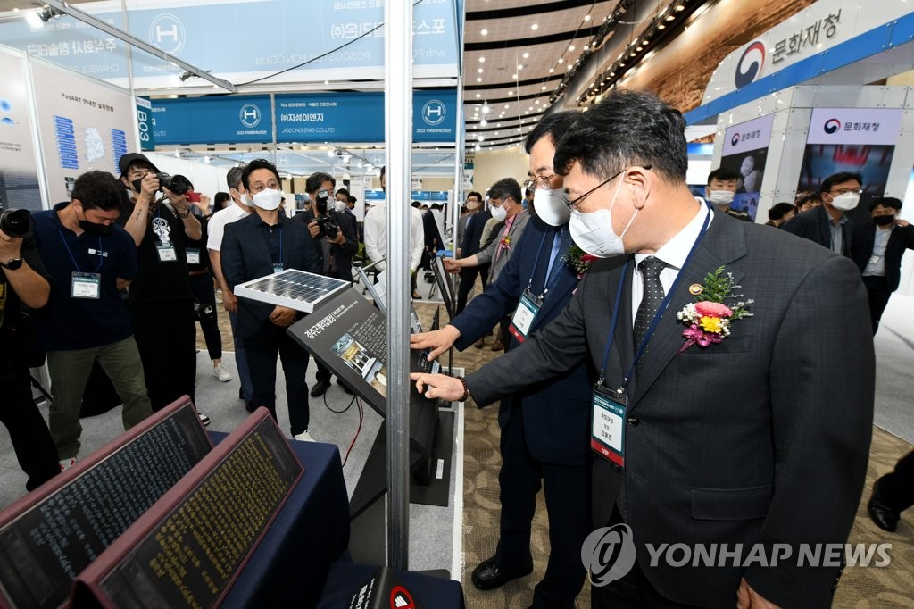 | ▲ 2022 국제문화재산업전 둘러보는 최응천 문화재청장 (서울=연합뉴스) 최응천 문화재청장이 15일 오후 경북 경주시 경주화백컨벤션센터에서 열린 '2022 국제문화재산업전' 개막식에 참석해 참여기업 부스를 살펴보고 있다. 2022.9.15 [문화재청 제공. 재판매 및 DB 금지] photo@yna.co.kr |