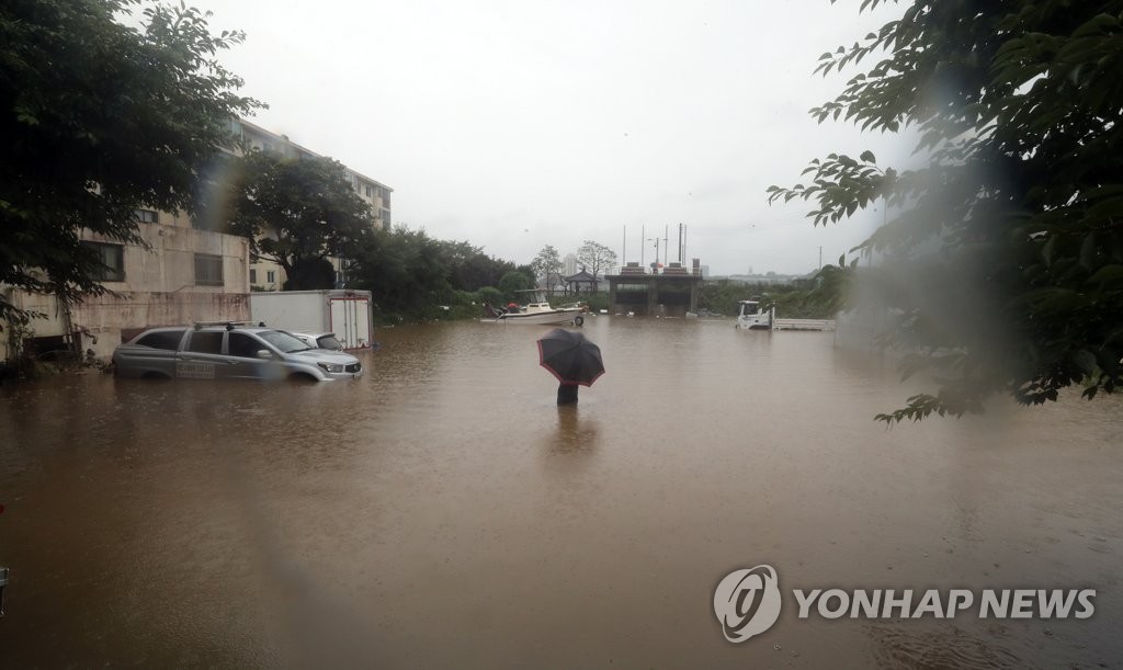 | ▲ 물 폭탄에 보트까지 동원했지만 (공주=연합뉴스) 이주형 기자 = 15일 오후 충남 공주시 옥룡동 주택가가 이날 새벽부터 쏟아진 폭우로 물에 잠겨 있다. 2023.7.15 coolee@yna.co.kr |