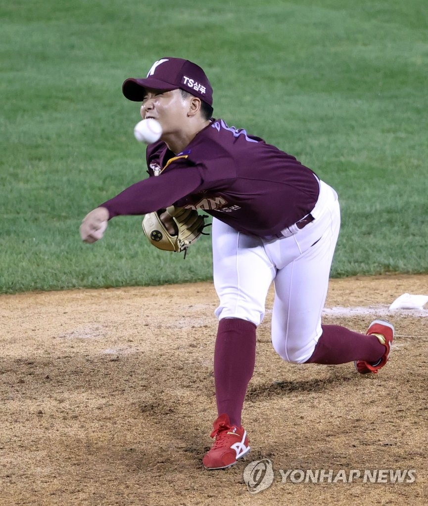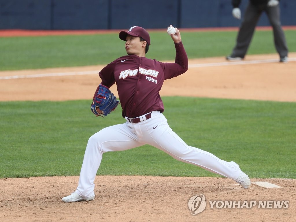 | ▲ In this file photo from April 22, 2020, Kim Seong-min of the Kiwoom Heroes pitches against the Doosan Bears in the bottom of the sixth inning of a Korea Baseball Organization exhibition game at Jamsil Baseball Stadium in Seoul. (Yonhap) |