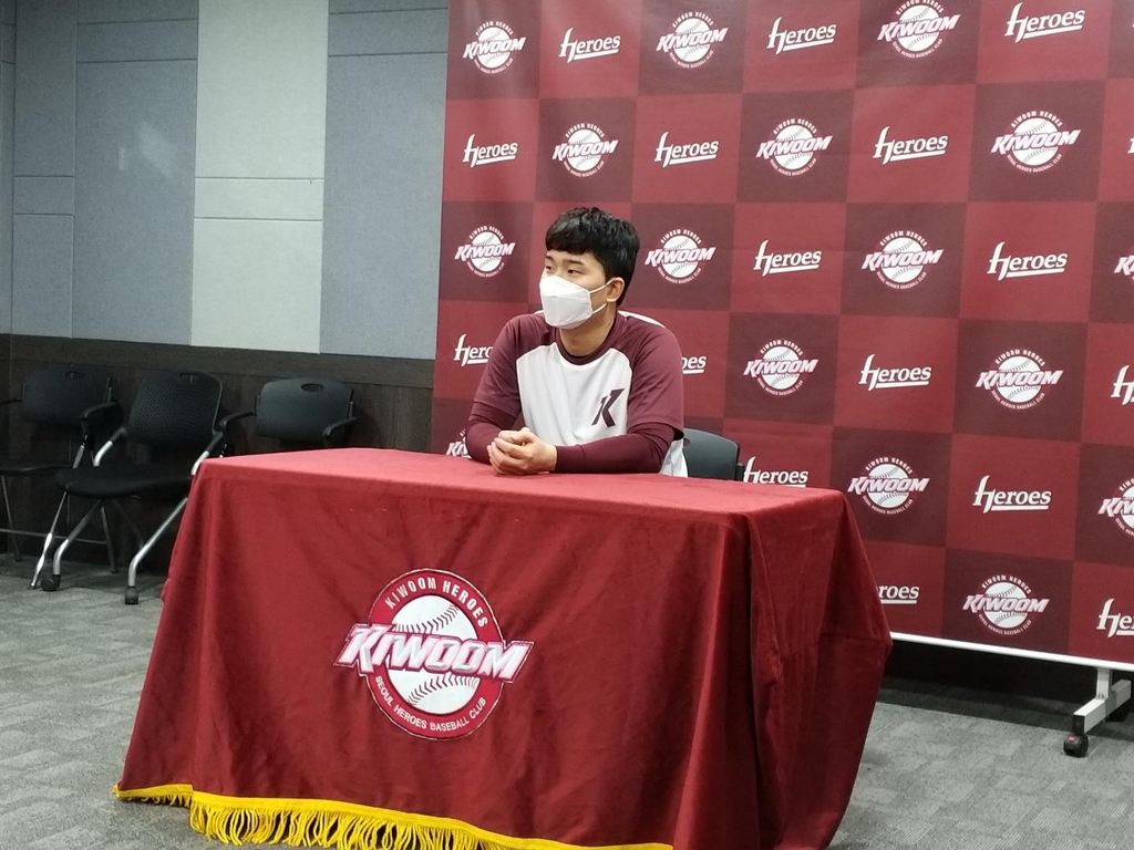 | ▲ Kim Seong-min of the Kiwoom Heroes speaks to reporters at Gocheok Sky Dome in Seoul on Feb. 9, 2021. (Yonhap) |