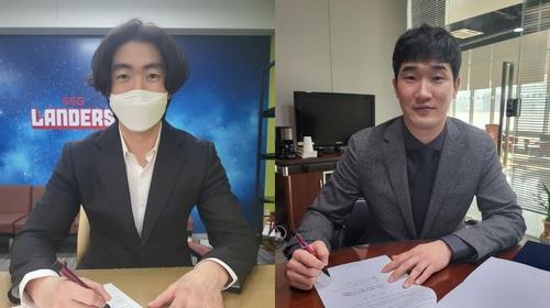 SEOUL, Dec. 14 (Yonhap) -- The SSG Landers signed two of their own pitchers to landmark contracts Tuesday, making them the first non-free agents to agree to multiyear deals in South Korean baseball.