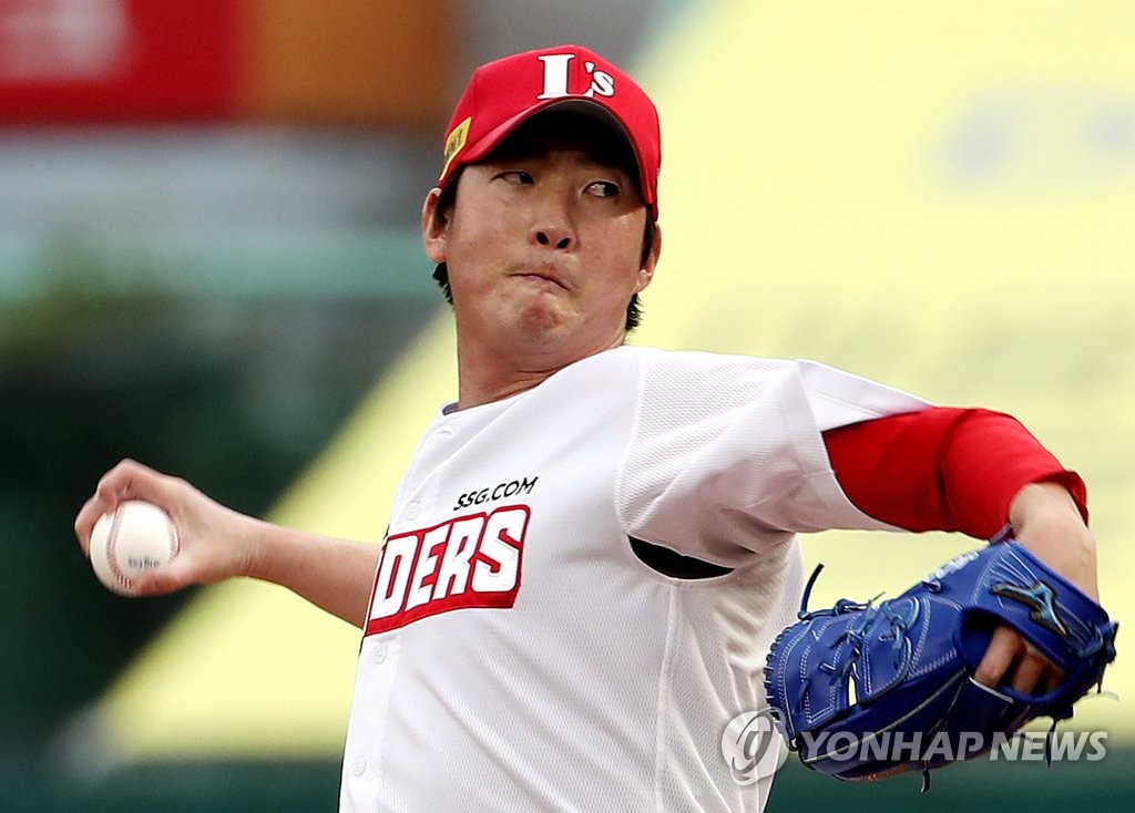 | ▲ In this file photo from May 14, 2021, Moon Seung-won of the SSG Landers pitches against the Doosan Bears in the top of the first inning of a Korea Baseball Organization regular season game at Incheon SSG Landers Field in Incheon, 40 kilometers west of Seoul. (Yonhap) |