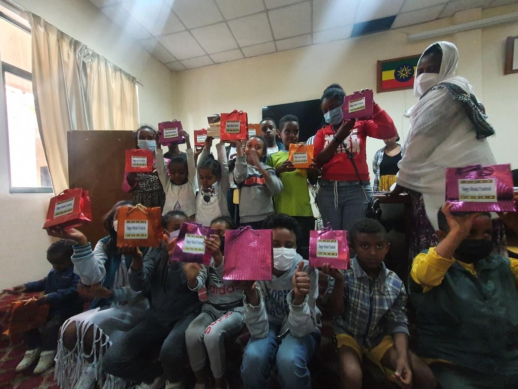 | ▲ 명절 캔디박스 선물 받고 기뻐하는 에티오피아 참전용사 후손들 (요하네스버그=연합뉴스) 25일(현지시간) 캔디박스 선물을 받은 에티오피아 참전용사 후손 50명의 일부 모습. 2021.9.26 [하옥선 지부장 제공, 재판매 및 DB 금지] |