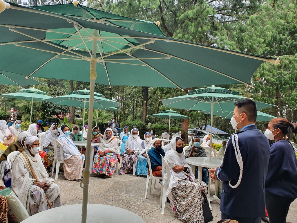 | ▲ 허리 숙여 선물 받는 에티오피아 참전용사 유가족 (요하네스버그=연합뉴스) 25일(현지시간) 한 에티오피아 참전용사 유가족이 깊이 허리 숙여 선물을 받고 있다. 2021.9.26 [하옥선 지부장 제공, 재판매 및 DB 금지] |