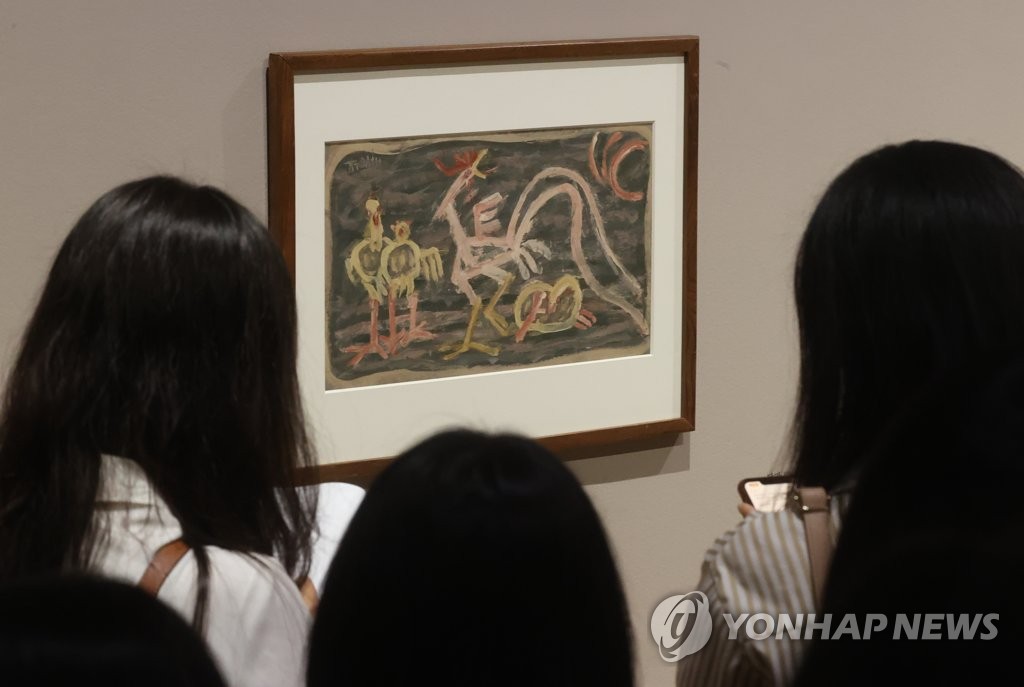 | ▲ 이중섭 '닭과 병아리' 이건희컬렉션 통해 첫 공개 (서울=연합뉴스) 류효림 기자 =10일 서울 종로구 소격동 국립현대미술관에서 열린 '이건희컬렉션 특별전: 이중섭' 전시 언론공개회 및 간담회에서 참석자들이 전시 작품을 살펴보고 있다. 2022.8.10 ryousanta@yna.co.kr |