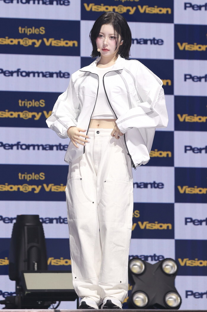 Jung Hye-rin, a member of South Korean girl group tripleS, poses for a photo during a showcase in Seoul on Oct. 23, 2024, to promote the release of the group's new album "Performante." (Yonhap)