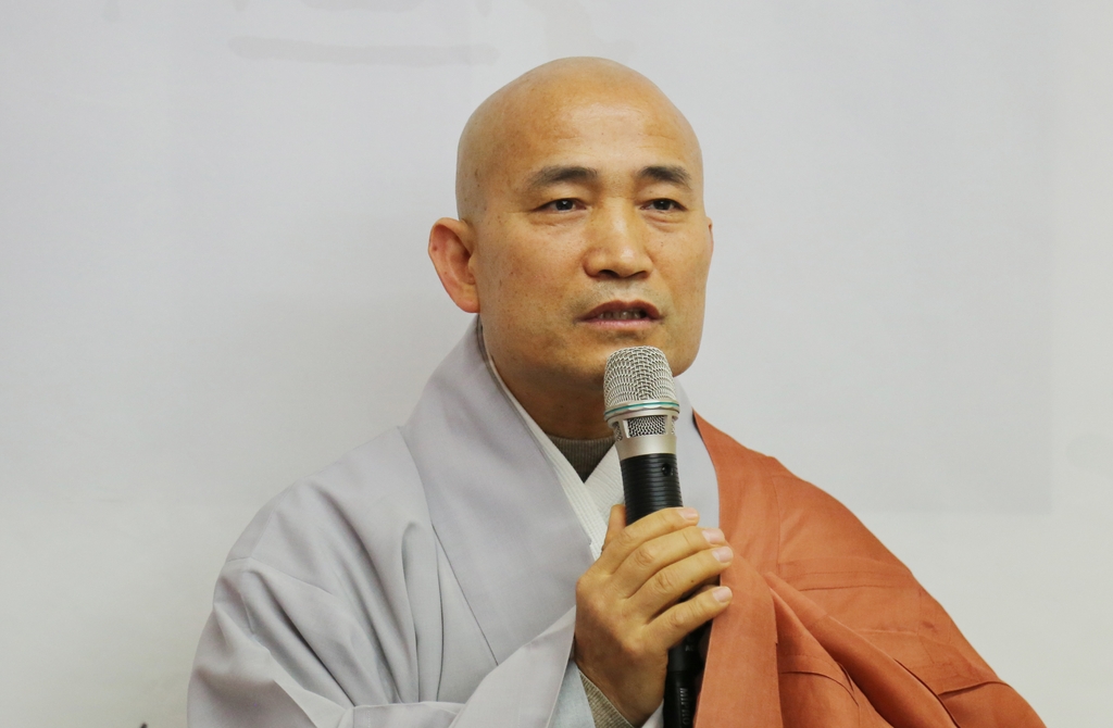 | ▲ 불교문화사업단장 원명스님 (서울=연합뉴스) 이세원 기자 = 한국불교문화사업단장인 원명스님이 1일 서울 종로구 템플스테이 홍보관에서 열린 간담회에서 발언하고 있다. |