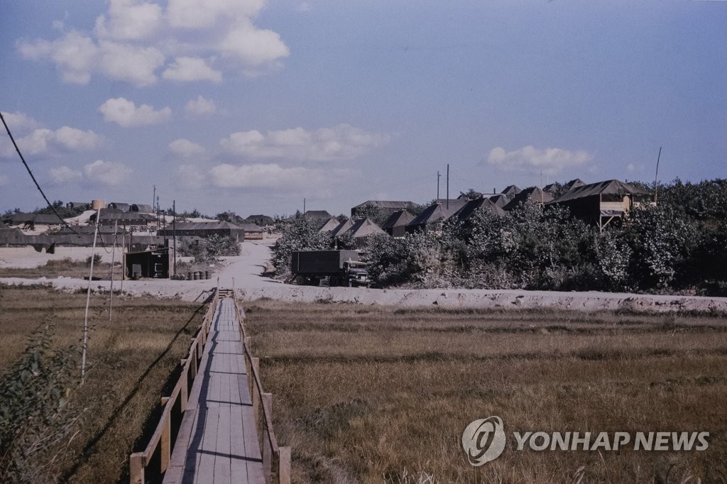 | ▲ 최초의 판문점 도보다리 (파주=연합뉴스) 임병식 기자 = 4일 경기도 파주시 캠프 그리브스에서 열린 중립국감독위원회(중감위) 스위스 상설 전시관 개관식에서 스위스 측이 공개한 1950년 대 도보다리의 모습. 중감위 캠프와 공동경비구역(JSA)을 연결하는 이 다리는 현재 파란색으로 도색되어 있다. 2023.8.4 andphotodo@yna.co.kr |