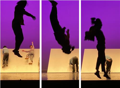 트램펄린뿐 아니라 대형 경사 무대 등 기존의 무대의 틀을 깨는 새로운 공간을 창조한다.