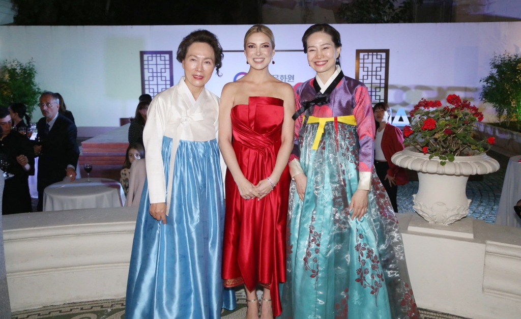 특히 영부인 파비올라 야네스 여사는 조선 왕실 의복의 특징인 금박문양이 들어간 한국의 전통 실크를 사용한 드레스를 착용하고 등장해 주목을 받았다.