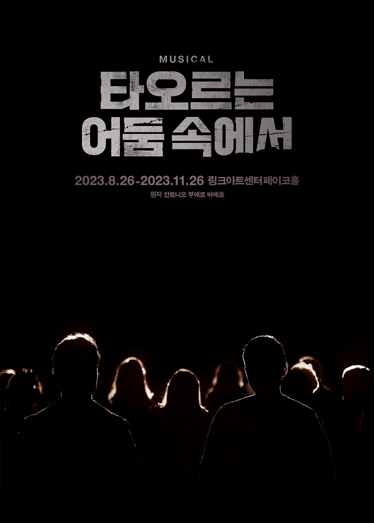 '타오르는 어둠 속에서'는 스페인 극작가 안토니오 부에로 바예호의 1946년작 희곡을 원작으로 한다. 1950년 초연 이후 줄곧 연극으로 공연된 작품을 뮤지컬로 각색하는 것은 이번이 처음이다.
