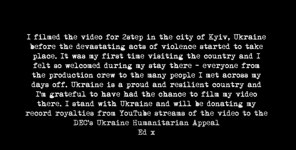 에드 시런은 뮤직비디오와 음원 수익을 자선 단체 'DEC'(Disasters Emergency Committee)를 통해 우크라이나에 기부할 예정이라고 워너뮤직코리아 측은 전했다.