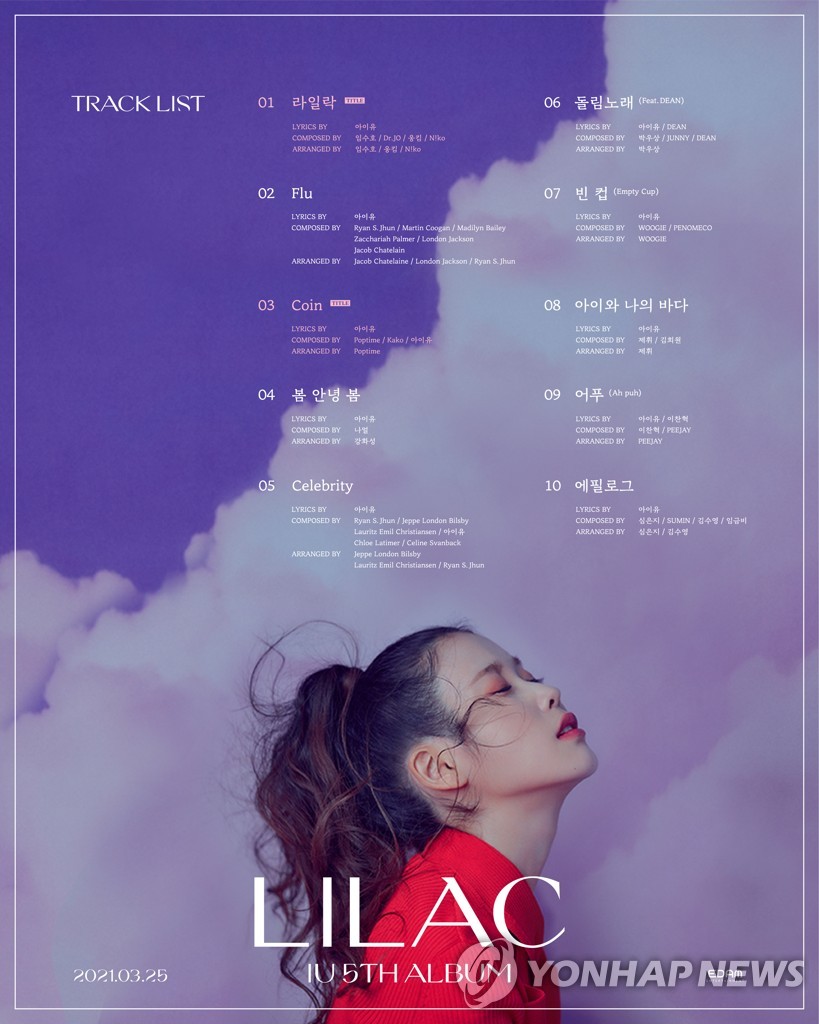 | ▲ 아이유 정규 5집 '라일락' 트랙리스트 [이담엔터테인먼트 제공. 재판매 및 DB 금지] |