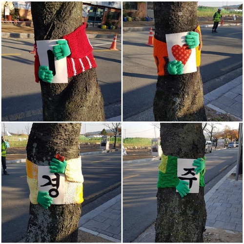 손뜨개질 모임 회원 봄부터 준비한 나무옷 126그루에 입혀