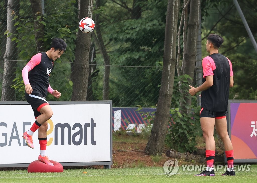 | ▲ 송민규 헤딩 (파주=연합뉴스) 류영석 기자 = 올림픽 축구 대표팀 송민규가 22일 오후 경기도 파주NFC(대표팀트레이닝센터)에서 소집돼 훈련을 하고 있다. 2021.6.22 ondol@yna.co.kr |