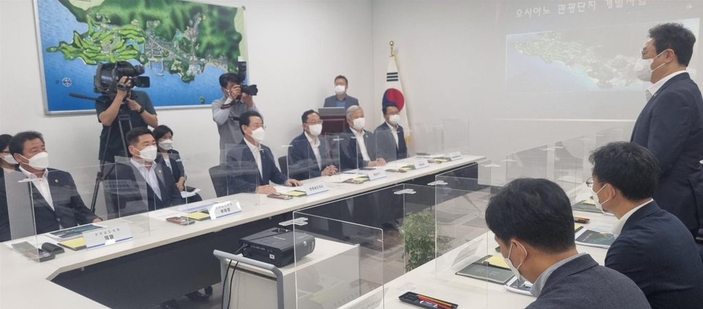 황희 문화체육관광부 장관은 18일 지역 관광개발사업을 현장점검하고 지자체 의견을 청취하기 위해 오시아노 관광단지를 찾았다.