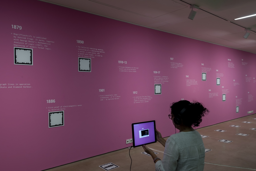 이진코드 개발, 초기 컴퓨터, 최초의 신경망, 인공지능 등 디지털 코드의 역사가 전시실 한쪽 벽면을 따라 기록됐다.