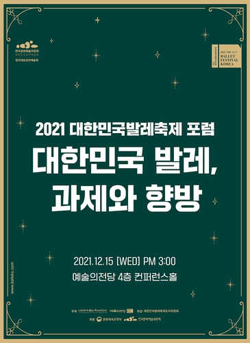 ▲ 대한민국발레축제추진단과 예술의전당은 '대한민국 발레, 과제와 향방'을 주제로 오는 15일 오후 3시 서울 예술의전당 오페라하우스 4층 콘퍼런스홀에서 '2021 대한민국발레축제 포럼'을 개최한다. '대한민국발레축제 진단', '창작발레 안무가 육성을 위한 과제: 해외사례를 중심으로', '민간발레단 자생력 강화와 직업발레단 창단 방안'을 주제로 발표가 진행되고, 발레 평론가와 민간 발레단 단장, 대학교수, 극장 관계자 등이 토론한다. 자세한 내용은 대한민국발레축제 홈페이지(www.bafeko.com)에서 확인하면 된다. (서울=연합뉴스)