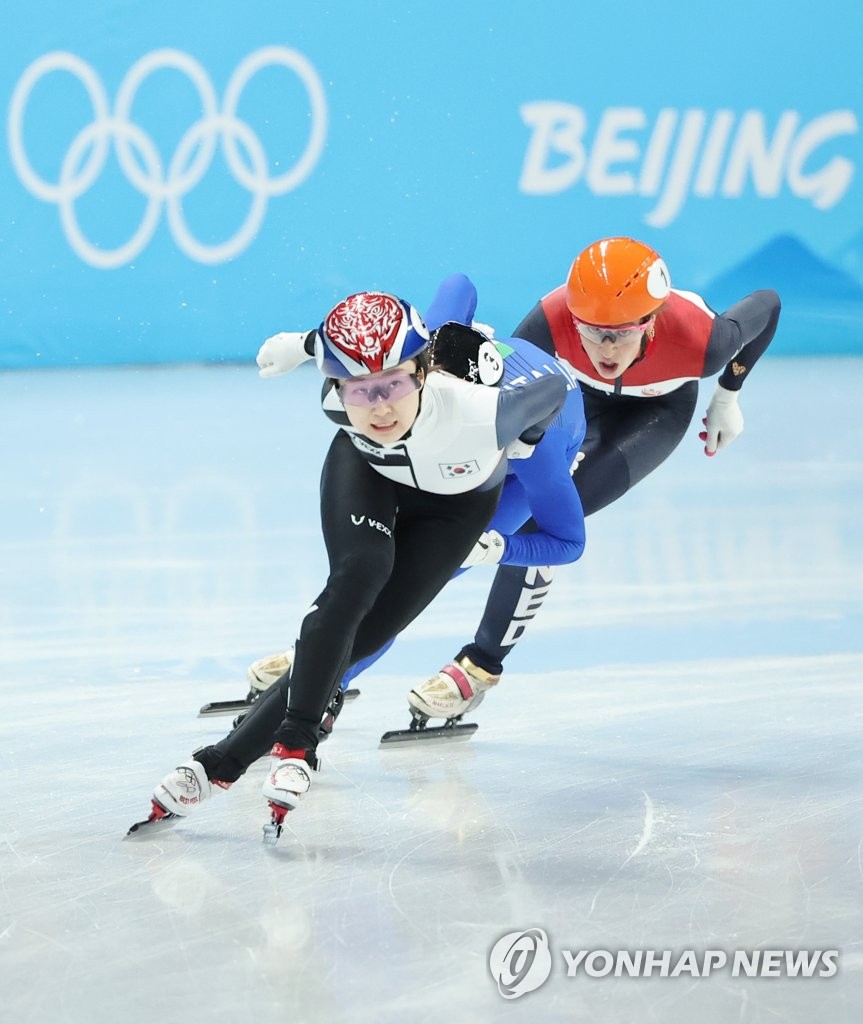 | ▲  Choi Min-jeong of South Korea (L) competes in the final of the women's 1,500m short track speed skating race at the Beijing Winter Olympics at Capital Indoor Stadium in Beijing on Feb. 16, 2022. (Yonhap) |