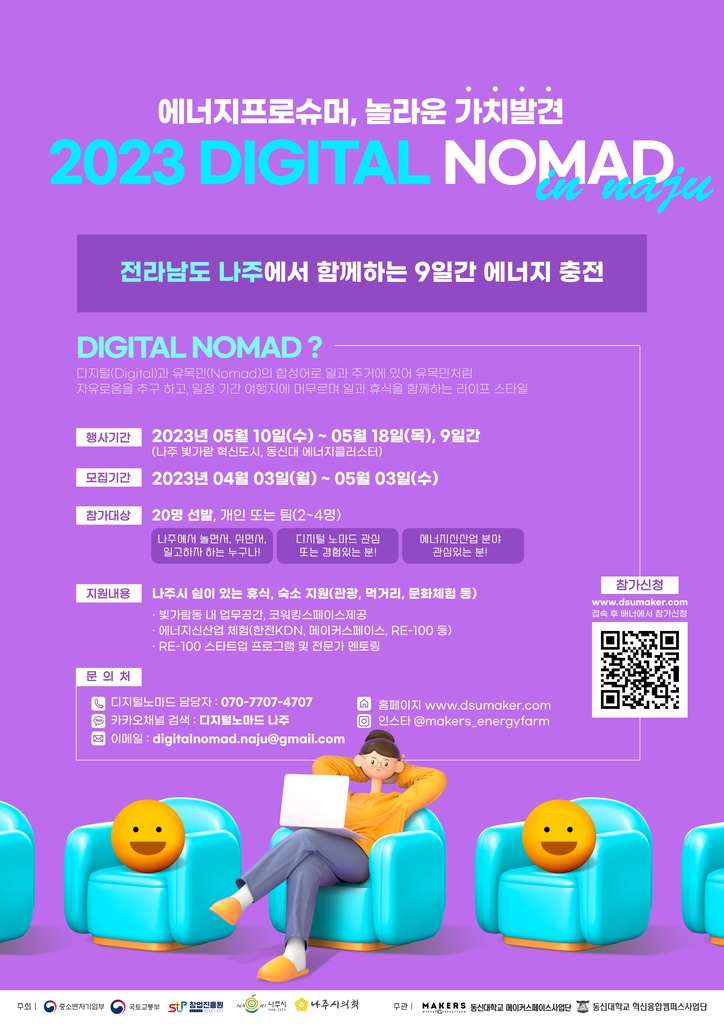 동신대학교는 산하 메이커스페이스사업단과 혁신융합캠퍼스사업단 등이 주관하는 '2023 디지털 노마드 인 나주'가 10일 나주 빛가람동 동신대 에너지클러스터에서 개막한다고 9일 밝혔다.