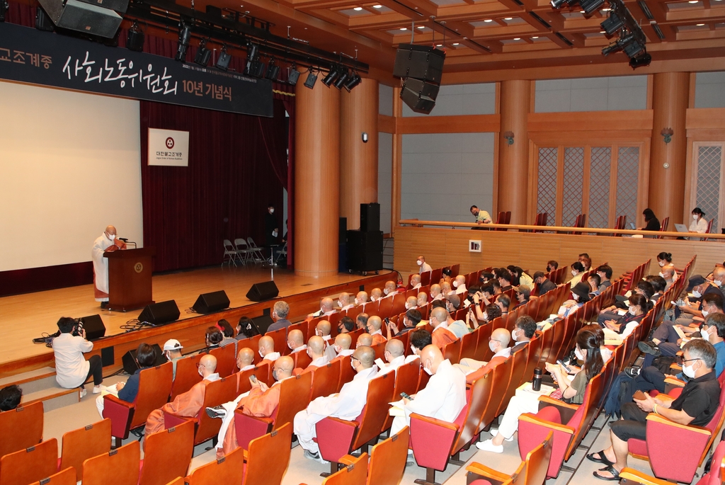 (서울=연합뉴스) 양정우 기자 = 사회적 약자의 고통과 함께해온 온 조계종 사회노동위원회(사노위)가 24일 창립 10주년을 기념식을 열고 지난 활동상을 돌아봤다.