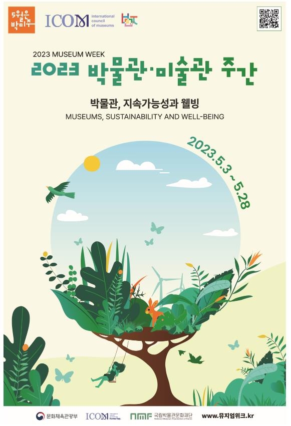 국제박물관협의회(ICOM) 한국위원회, 국립박물관문화재단, 전국 280여 개 박물관·미술관과 함께 여는 '2023 박물관·미술관 주간' 주제는 '박물관, 지속가능성과 웰빙'(Museums, Sustainability and Well-being)이다.