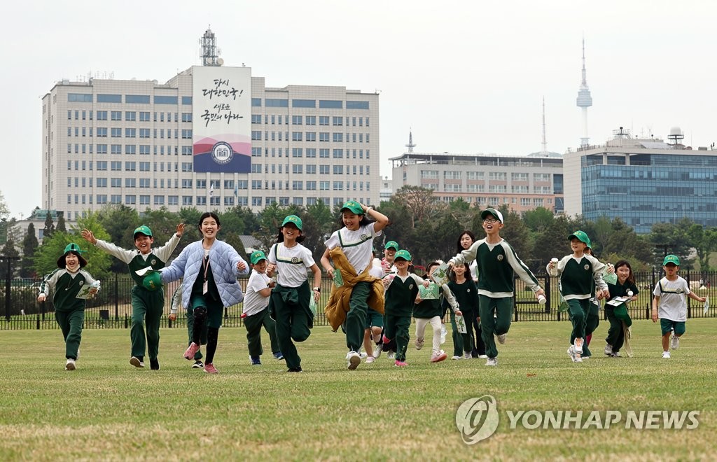 | ▲ 내일은 우리의 날 (서울=연합뉴스) 윤동진 기자 = 4일 오후 어린이날을 하루 앞두고 개방된 용산어린이정원에서 인근 유치원 원아들이 취재진 요청에 잔디마당을 달리고 있다. 2023.5.4 mon@yna.co.kr |