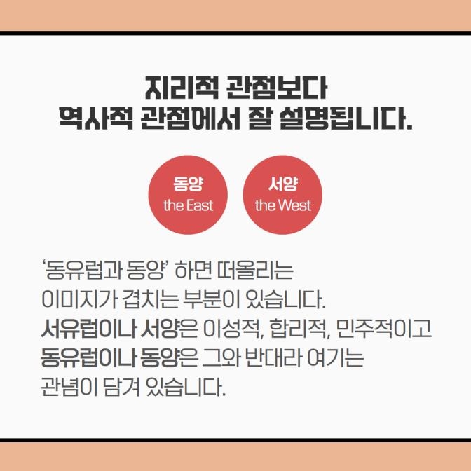 실상은 지리적 관점보다 역사적 관점에서 잘 설명됩니다. '동유럽과 동양' 하면 떠올리는 이미지가 겹치는 부분이 있습니다.