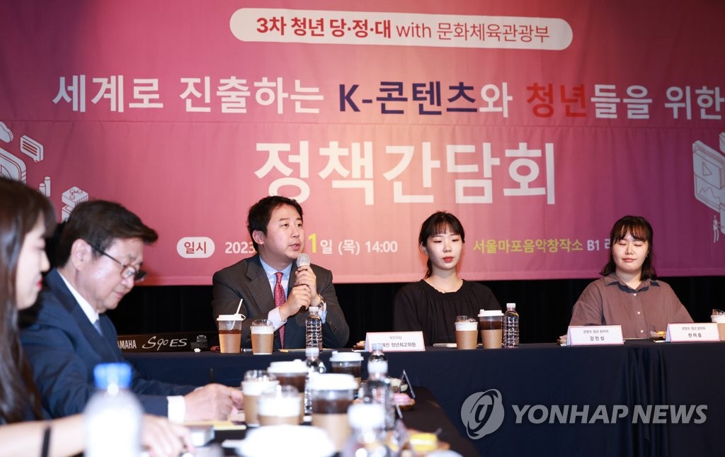 당정대는 이날 오후 서울 마포구 서울음악창작소에서 단편영화 PD, 웹툰·시나리오 작가 등 콘텐츠 분야에 종사하는 청년들과 정책 간담회를 개최했다.