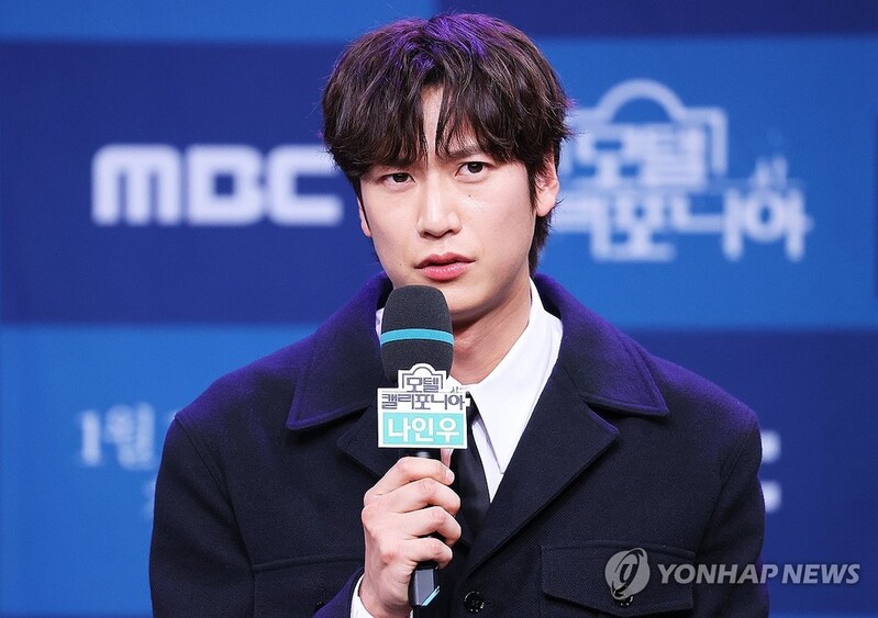 | ▲ 군면제 관련 질문에 답하는 나인우 (서울=연합뉴스) 진연수 기자 = 배우 나인우가 9일 오후 서울 마포구 MBC 골든마우스홀에서 열린 MBC 새 금토드라마 '모텔 캘리포니아' 제작발표회에서 군면제 관련 질문에 답하고 있다. 2025.1.9 jin90@yna.co.kr |