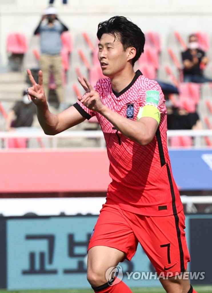 (서울=연합뉴스) 안홍석 기자 = 벤투호에서 1년 8개월 만에 골맛을 본 손흥민(29·토트넘)이 그라운드에서 쓰러진 전 소속팀 동료를 위한 세리머니를 펼쳤다.