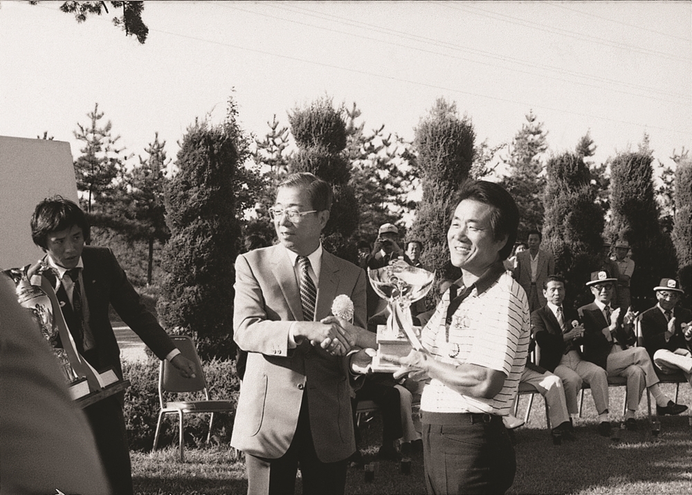 | ▲ 1981년 제1회 신한동해오픈 우승 후 기념 촬영하는 한장상 고문(오른쪽) [KPGA 제공. 재판매 및 DB 금지] |