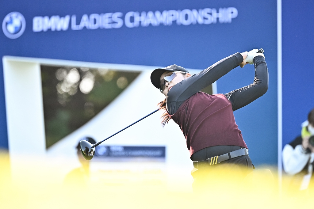 | ▲ South Korean amateur Yoo Hyun-jo tees off on the first hole during the first round of the BMW Ladies Championship on the LPGA Tour at Oak Valley Country Club in Wonju, Gangwon Province, on Oct. 20, 2022, in this photo provided by BMW Korea. (PHOTO NOT FOR SALE) (Yonhap) |
