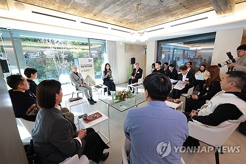 | ▲ Lee Boo-jin, president and chief executive of Hotel Shilla, who chairs the 2023-24 Visit Korea Year Committee, speaks during a meeting at the House of Sulwhasoo Bukchon, a flagship store of the cosmetics brand Sulwhasoo, in Seoul, on Nov. 13, 2023, to discuss strategy for boosting tourism. (Pool photo) (Yonhap) |