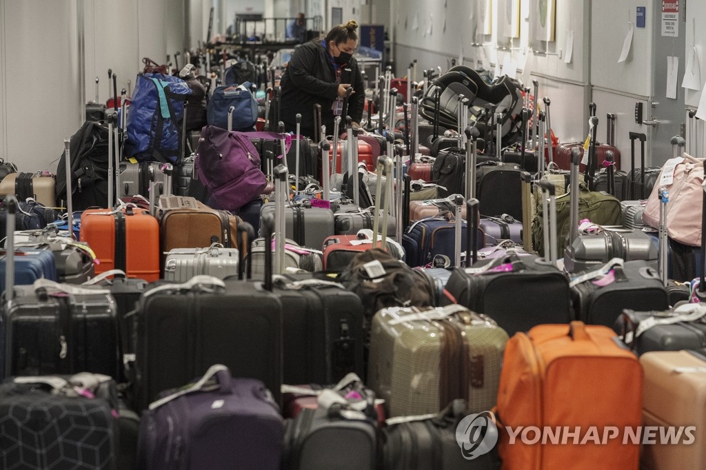 | ▲ 사우스웨스트 항공 대규모 결항으로 주인 잃은 여행 가방들 (볼티모어 EPA=연합뉴스) 미국 저가항공사인 사우스웨스트 항공이 28일(현지시간) 하룻동안 항공편 3천여편의 운항을 또 취소했다. 이 때문에 미 메릴랜드주 소재 볼티모어 워싱턴 국제공항에는 찾지 않은 여행가방 수백 개가 빼곡히 들어서 있다. 지난 22일부터 미국을 강타한 겨울 폭풍으로 사우스웨스트 항공은 약 1만1천 편의 항공편을 취소했다. 사우스웨스트 항공 측은 이번 대규모 결항사태가 1990년대 수준에 머물러 있는 회사 IT 소프트웨어가 원인이라고 밝혔다. 2022.12.29 jason3669@yna.co.kr |