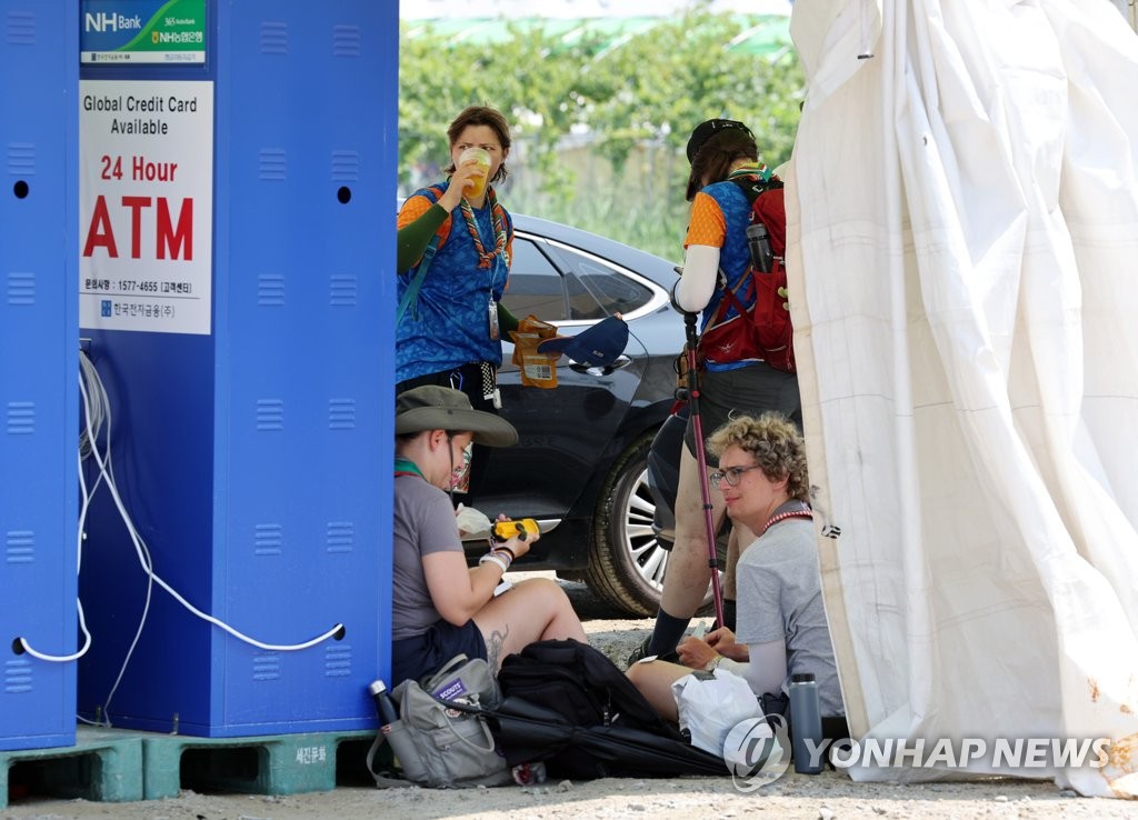 | ▲ '그늘을 찾아서' (부안=연합뉴스) 정경재 기자 = 2023 새만금 세계스카우트잼버리 개영일인 2일 전북 부안군 하서면 야영장 델타구역에서 참가자들이 그늘에 들어가 쉬고 있다. 2023.8.2 jaya@yna.co.kr |