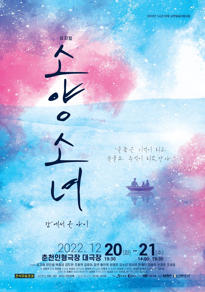 뮤지컬 소양소녀는 강원지역을 중심으로 한 젊은 예술창작집단 극단인 '이륙'이 공연한다.