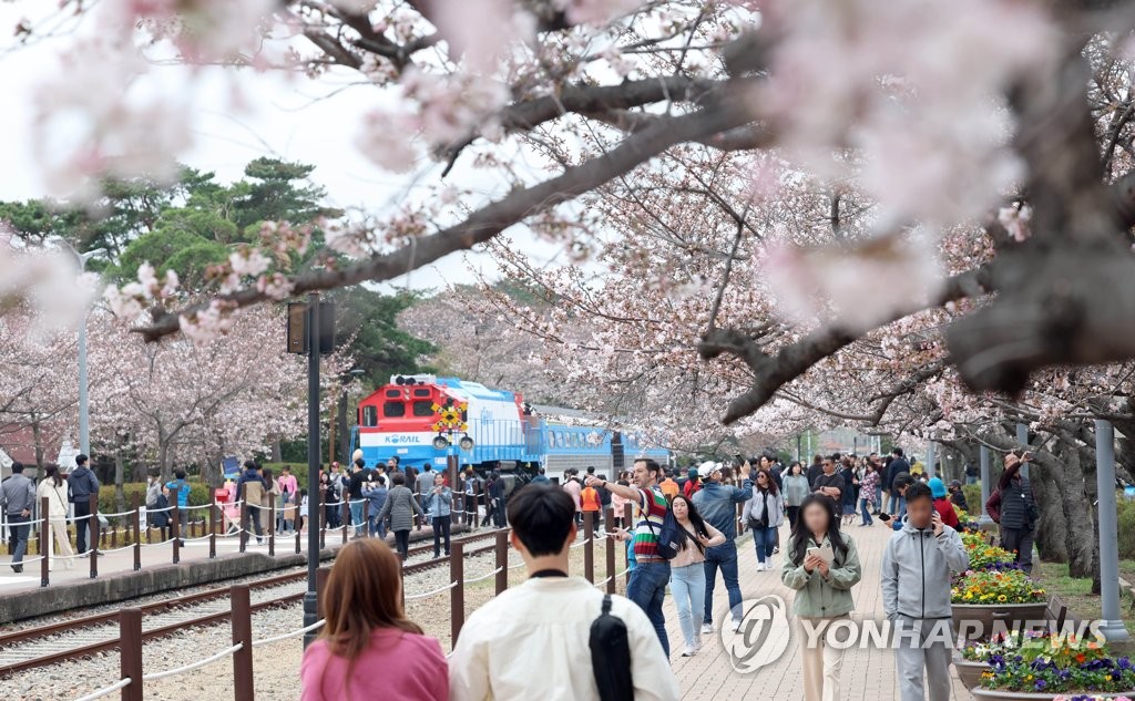 이날 벚꽃 명소로 소문난 진해 경화역(폐역)에는 다양한 연령의 관광객이 몰렸다.