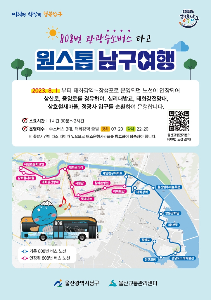 맞춤형 관광수소버스 808번 노선은 동해남부선 광역전철을 통해 태화강역으로 유입되는 관광객을 장생포 고래문화특구로 유치하고자 2021년 5월부터 운영하고 있다.