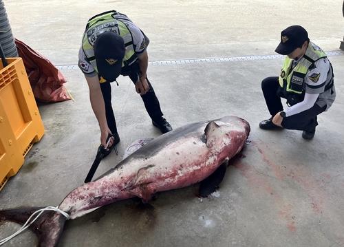 동해해경에 따르면 이날 오전 4시 15분께 삼척시 임원항 동방 약 3.7km 해상에서 정치망 어선 A호(24t급·승선원 7명)가 조업 중 그물에 걸려 죽어있는 악상어 1마리를 발견하고 동해해경에 신고했다.