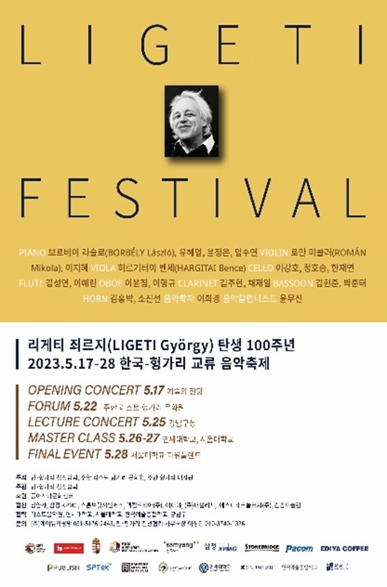 17일 서울 예술의전당 IBK챔버홀에서 열리는 개막 연주회에서는 리게티의 대표적인 실내악곡들과 도흐나니, 바르톡, 코다이 등 헝가리 작곡가들의 작품이 연주된다. 바이올리니스트 로만 미콜러, 비올리스트 허르기터이 벤체 등 헝가리 연주자가 내한해 유혜영, 이강호, 임수연, 이지혜 등 한국 연주자와 협연한다.