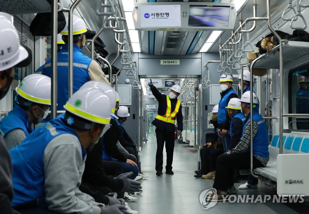 | ▲ Substitute workers are educated on a train at a train management depot in Seoul on Dec. 1, 2022, one day ahead of a strike declared by unionized railway workers. (Yonhap) |